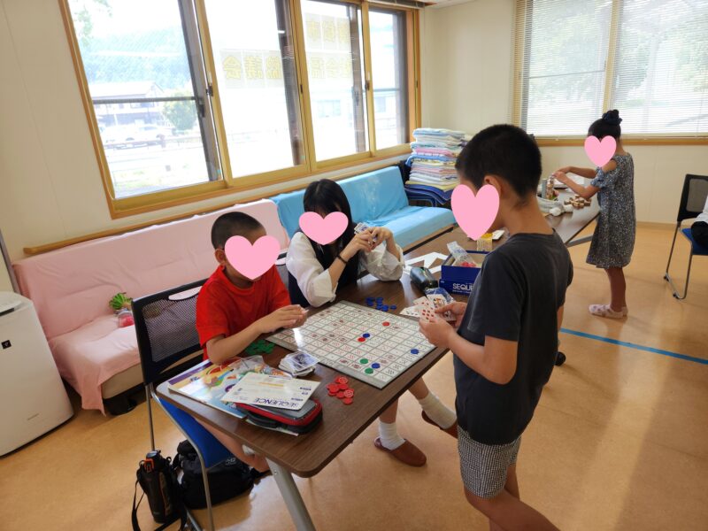 「夏休みの宿題が終わっていない子集まれ」の呼びかけに、集まった子どもたちと一緒に宿題や工作活動などを楽しみました。