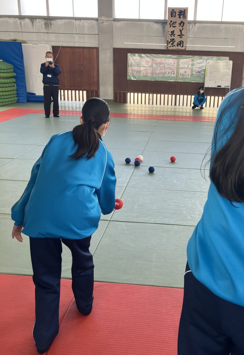 生徒の皆さんは、体育の授業で「ボッチャ」に触れていて、練習を重ねていたこともあり、短い時間の中でも円滑に競技が進みました。