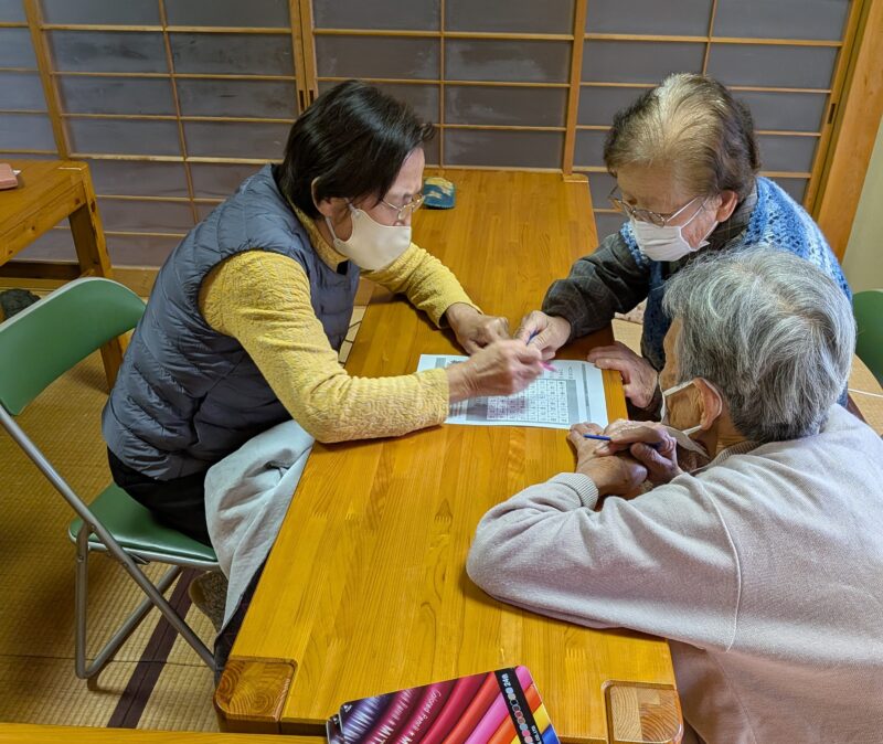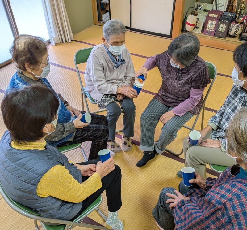 おしゃべりを楽しみながら、脳トレやピンポン玉と紙コップを使ったレクリエーションなど、みんなでできる事を楽しんでいました。