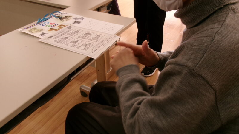 あおぞら会では、日頃外出が難しく、様々な障がいを抱えている方たちが、専門職の方たちと一緒に1日を過ごします。保健師による健康体操や指体操、障がい者支援機関の方と一緒に制作活動やレクリエーションを楽しみました。相談者と支援者という関係から、一緒に活動を楽しむ仲間として、いつもとは違った様子をお互い見る事ができよかったです。