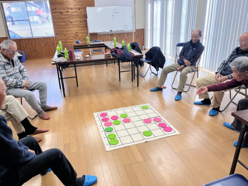食後には「布オセロゲーム」を楽しみ、「来年も元気に集まろう」と声をかけ合い1年を締めくくりました。