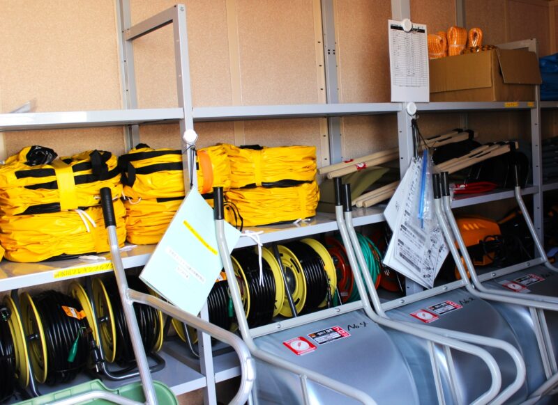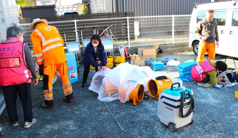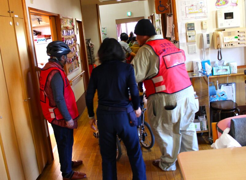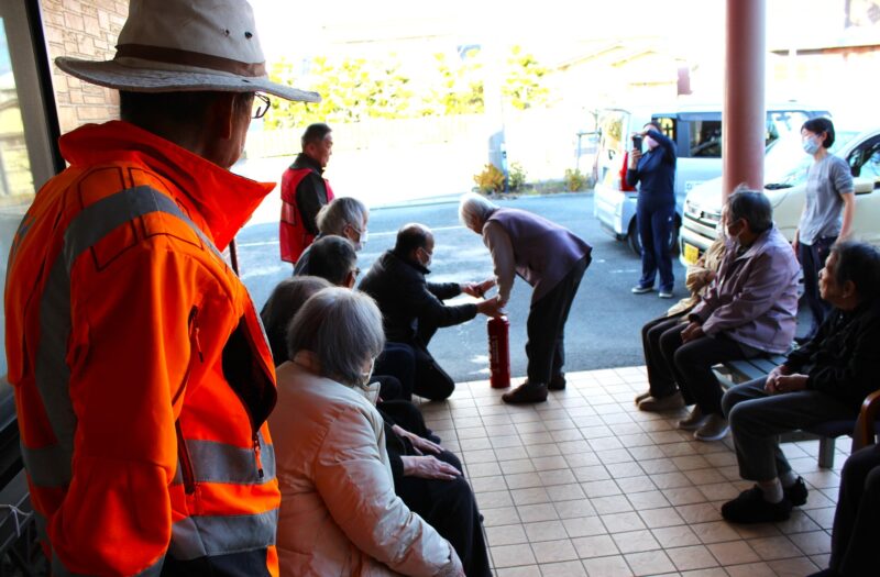 12月18日(木)、なごみの家(地域密着型小規模多機能ホーム)に設置されている災害ボランティア活動用資機材の点検作業を行いました。担当CSW、浜松市災害ボランティア連絡会より災害ボランティアコーディネーター、可美地区民児協会長、施設管理者が参加し、❝赤い羽根❞災害ボランティア活動用機器整備事業で整備されたスコップや送風機・水中ポンプなど13種類の機器について、ナンバリング確認や稼働点検、在庫管理を実施しました。点検後は、入居高齢者や職員とともに、避難訓練を行い、災害ボランティアコーディネーターも高齢者の安全な誘導を行いました。合わせて消火器の取り扱い訓練も実施し、地域での助け合いが求められる災害時に備えた実践的な確認の機会となりました。