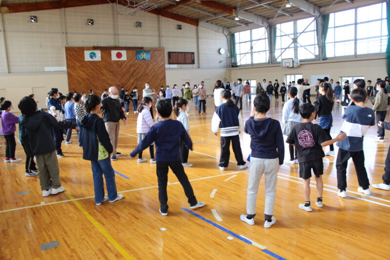 2. 後半「三方原音頭を教わろう」地域に伝わる「三方原音頭」を地域の皆様に教えていただきました。手の動きや足さばきなどを丁寧に指導していただき、児童たちは楽しみながら取り組みました。世代を超えた一体感が生まれ会場は笑顔に包まれました。