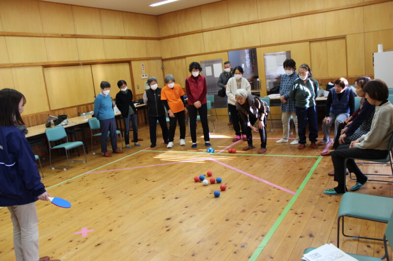 1月19日(月) 高齢者サロン「なばなの会」には、女性13名が参加しボッチャを実施しました。