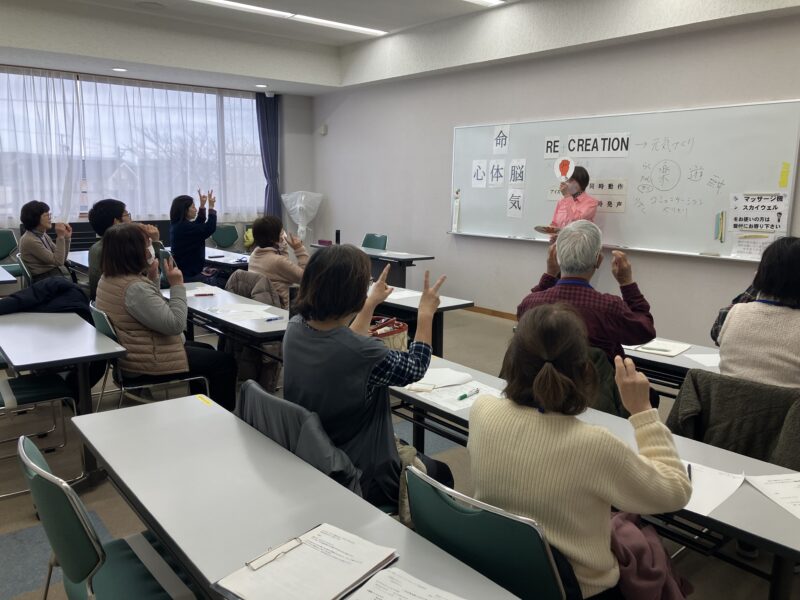 今年度は、静岡県レクリエーション協会 副理事長 青野宏子 氏を講師にお招きし、講義と実技をしていただきました。