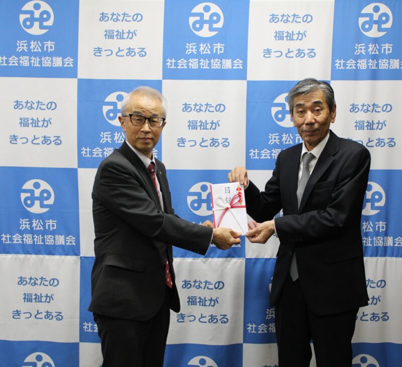 遠州信用金庫様より、「えんちゃん応援SDGs定期預金」により預けられた預金総額の0.01%相当額と物価高対策支援金を浜松市・湖西市・磐田市の各社会福祉協議会へご寄付いただき4月1日に贈呈式を行いました。