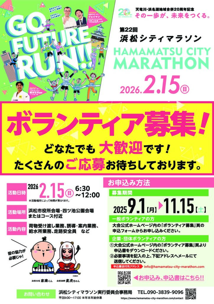 第22回浜松シティマラソン ボランティア募集のお知らせ