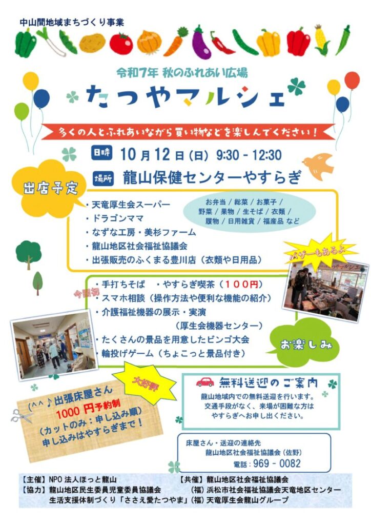 【参加者募集】秋のふれあい広場「たつやマルシェ」(天竜地区センター)